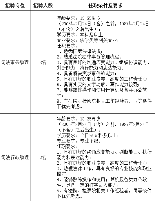 2.政治立场坚定,遵纪守法,具有良好的政治素养,品行端正,公道正派,积极向上;具有良好的职业操守,热爱法律工作;具有符合岗位要求的能力素质,熟练掌握计算机操作;