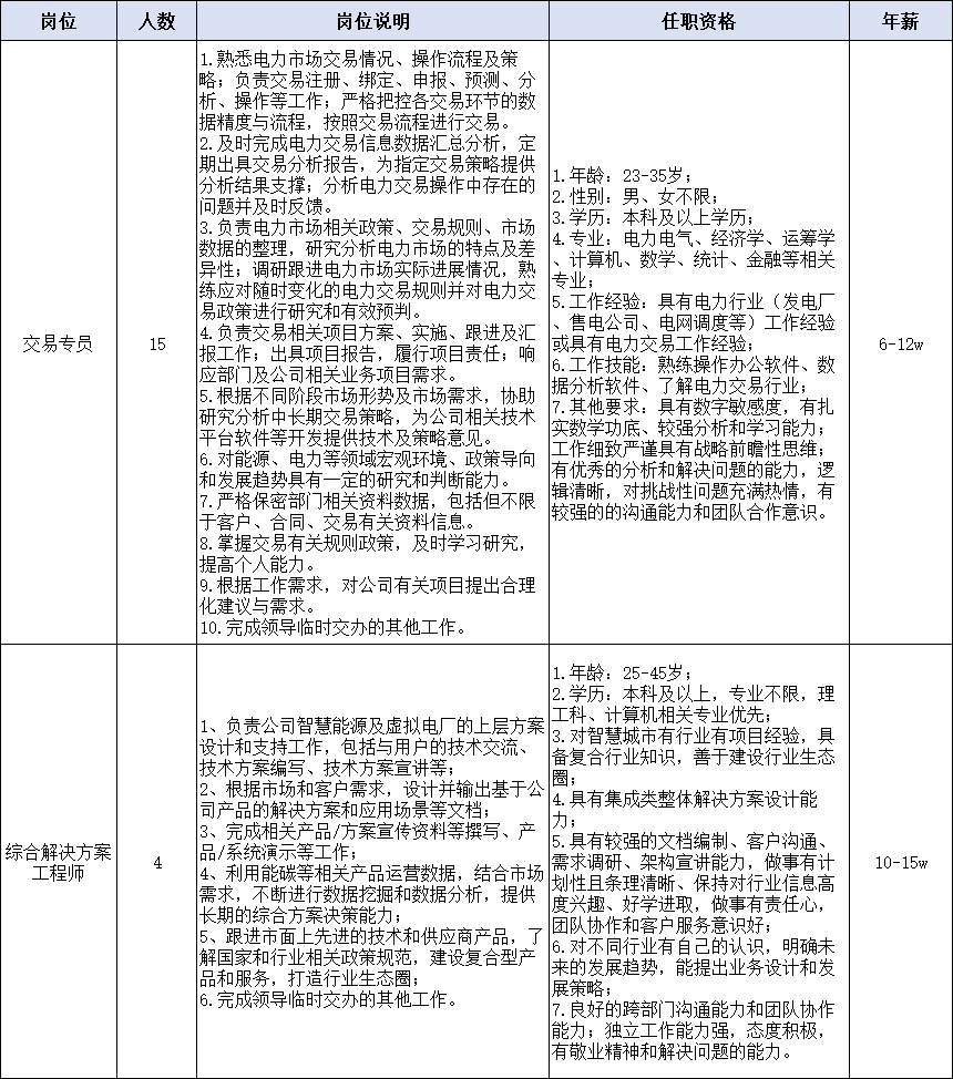 一、招聘岗位、岗位说明、任职资格及年薪