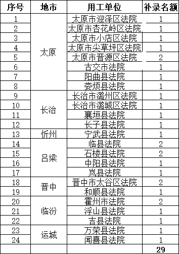 根据全省各基层人民法院聘用制书记员空额情况和实际工作需要,结合《山西省法院聘用制书记员储备库及补录规定》的相关要求,拟从我公司“招录109名书记员及58名储备书记员”储备库中为全省部分基层人民法院补录书记员,本次补录以线上选岗方式进行,现就选岗有关事项通知如下: