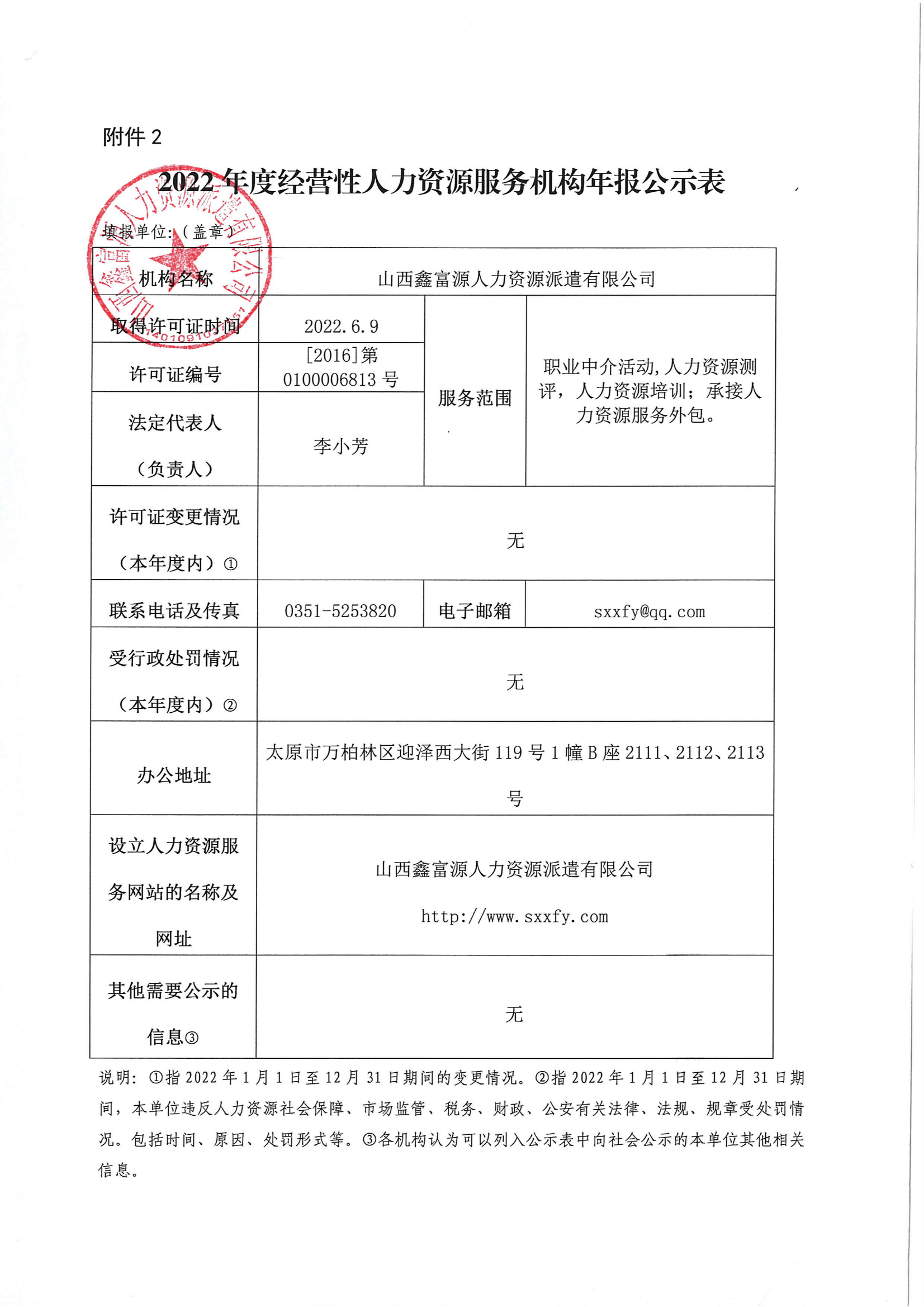 2022年度经营性人力资源服务机构年报公示表