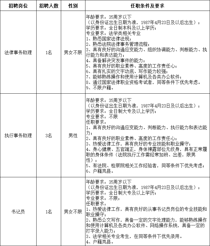 根据工作需要,山西英国上市公司365人力资源派遣有限公司(以下简称:英国上市公司365人力资源公司)受吕梁市岚县人民法院委托,面向社会公开招聘5名司法辅助人员,现将有关事项公告如下:
