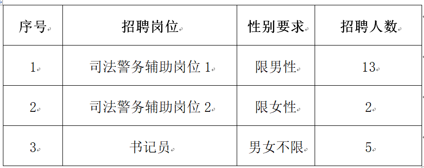 (1)大专以上学历,专业不限,具备与司法警务辅助工作相适应的专业知识和技能;