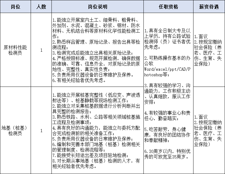 因公司发展需要,现委托山西英国上市公司365人力资源派遣有限公司向社会公开招聘检验检测工作人员,并将有关事项公告如下: