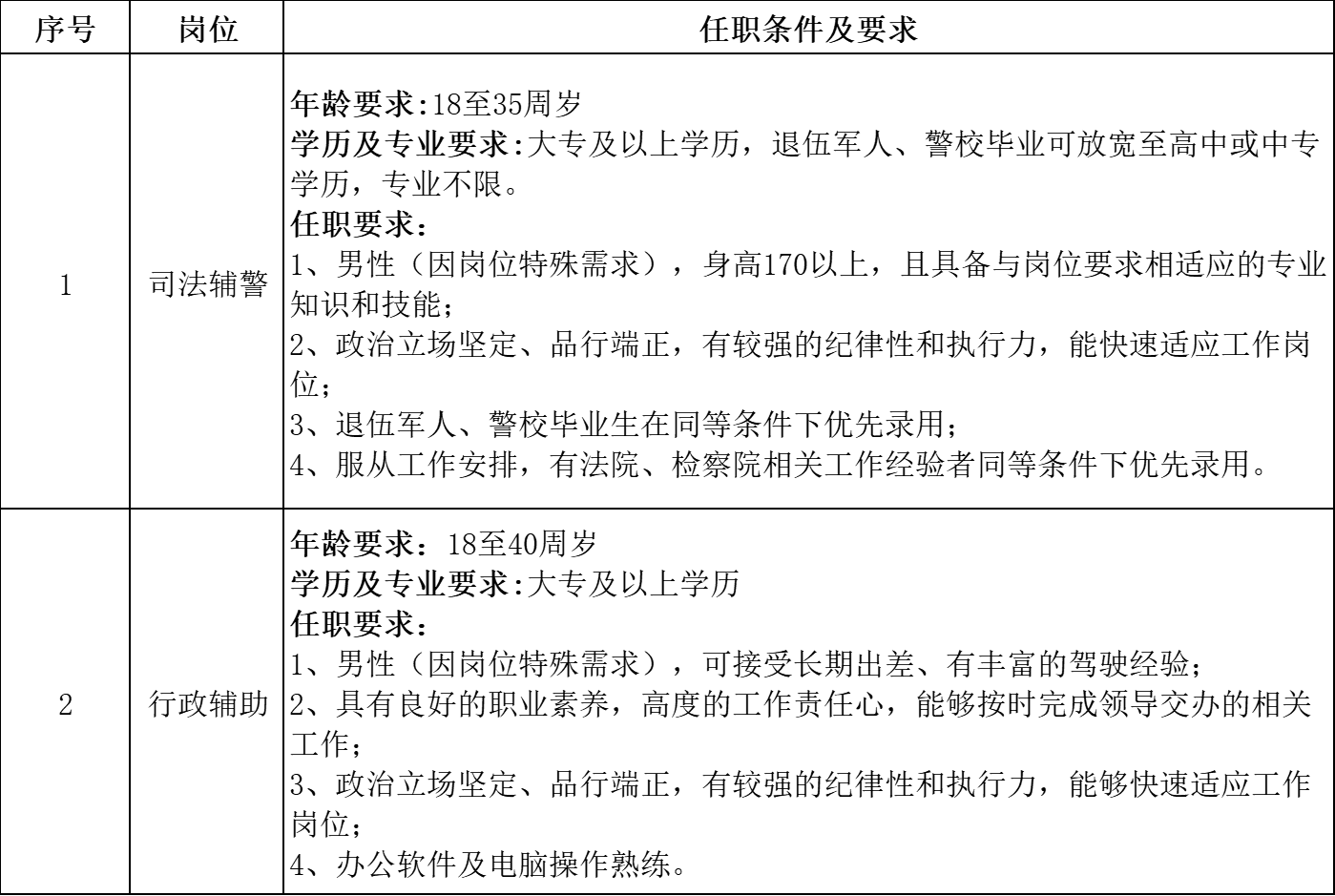 二、招聘岗位和录用条件