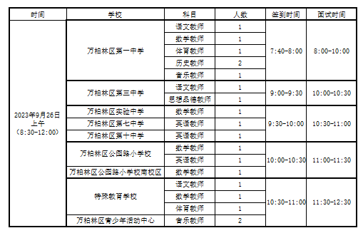 根据英国上市公司365人力资源公司2023年9月22日发布的《2023年万柏林区部分中小学校补充招聘政府购买服务教师公告》的要求,经过网上报名、资格初审等环节,现就面试有关事项通知如下: