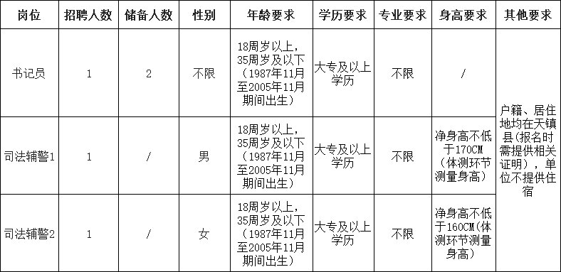 (3)司法辅警岗位:从体能测试合格人员中依据笔试成绩由高到低的顺序,按照各岗位招聘人数1:3的比例确定入围面试人员,末位笔试成绩相同的,同时进入面试;不足1:3比例的,参加笔试且体能测试合格人员全部进入面试。