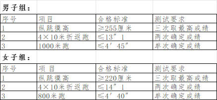 温馨提示:请考生提前进行体能训练,做好体测准备,体测时要量力而行,避免受伤。