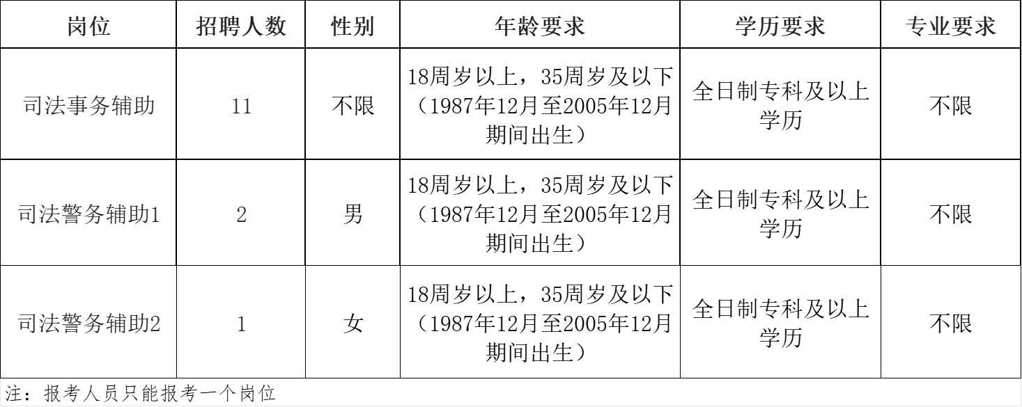 (3)司法事务辅助岗:按照笔试成绩由高到低的顺序,根据岗位招聘人数1:2的比例确定入围面试人员,不足1:2比例的,全部进入面试;若末位笔试成绩相同的,同时进入面试。