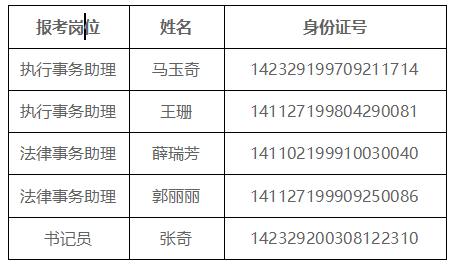 二、入围 体检人员名单(排序不分先后)