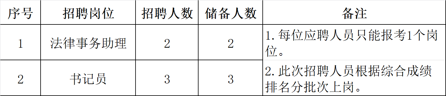 (1)法律事务助理:全日制普通高等院校本科及以上学历;法学类相关专业(已取得我国法律职业资格证书者不限学历及专业,并在同等条件下优先录用)。