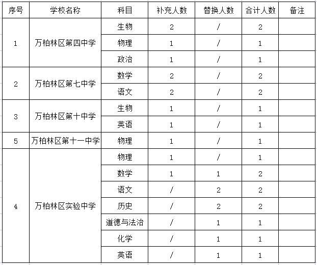 因万柏林区第四中学、万柏林区第七中学、万柏林区第十中学、万柏林区第十一中学、万柏林区实验中学有教师离职,为满足我区部分中学校教学需要,结合学校实际,现面向社会为以上学校补充招聘政府购买服务教师,具体公告如下: