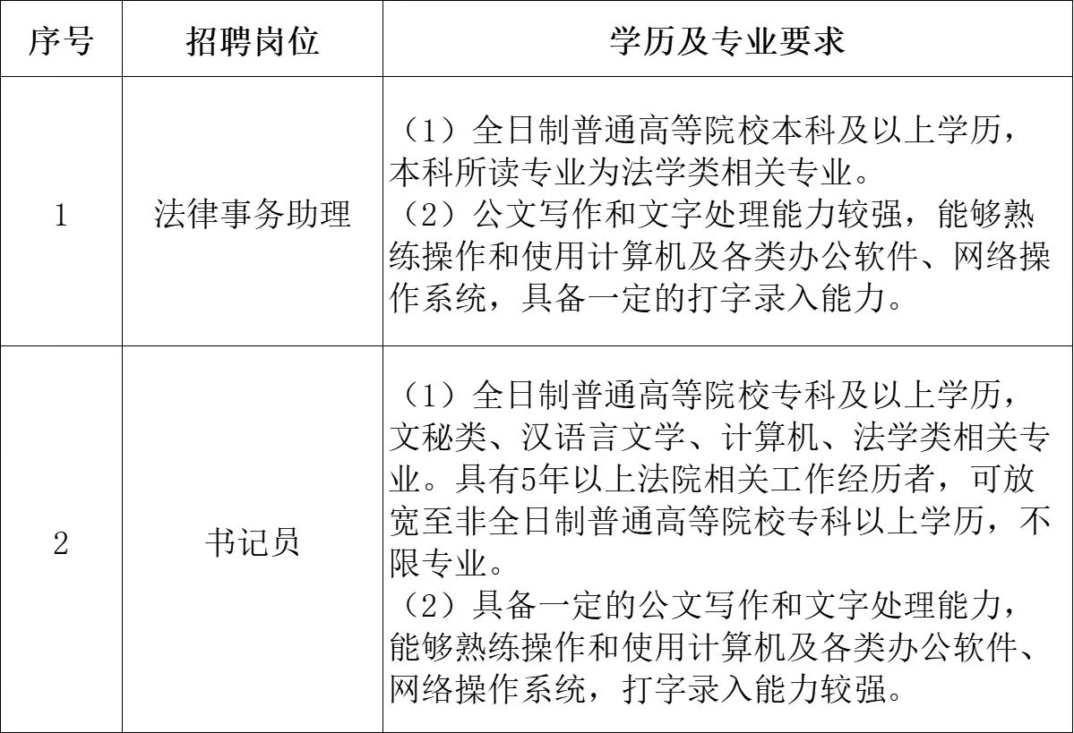 9.通过国家法律职业资格考试者,具有法院相关工作经历者,同等条件下优先。