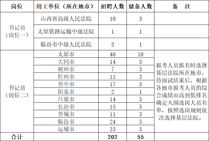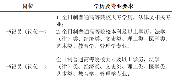 根据书记员岗位需要,综合考虑专业能力测试、面试和体检考察情况,择优确定招聘及储备人选。