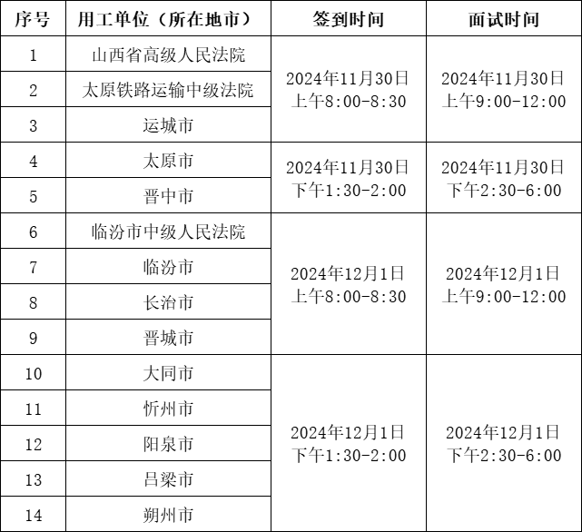 1.各法院(地市)入围面试名单以考生准考证号进行排序。