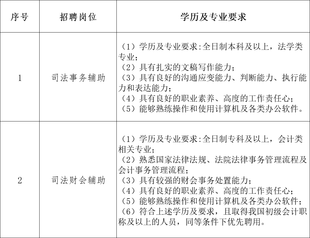 5.年龄要求:司法事务辅助岗位要求18-25周岁(1999年7月至2007年7月期间出生);司法财会辅助岗位要求18-30周岁(1994年7月至2007年7月期间出生);