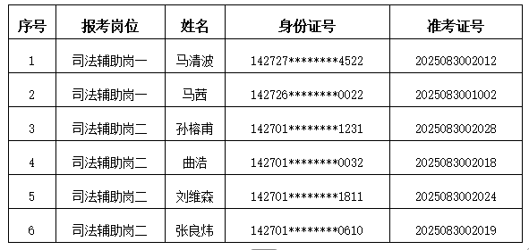 根据英国上市公司365人力资源公司2025年8月15日发布的《运城市盐湖区人民法院招聘6名司法辅助人员公告》(项目编号:XFYZP-2025YC058)的要求,经过网上报名、资格审查、初试、综合面试、体检、政审等环节,现将拟录用人员名单公示如下: