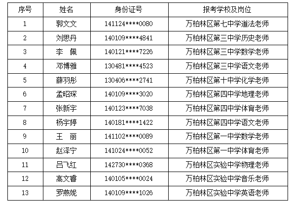 根据招聘公告,以上拟录用人员须按要求进行体检。参照《山西省教师资格认定体检标准(试行)》自行前往二甲及以上公立医院体检。