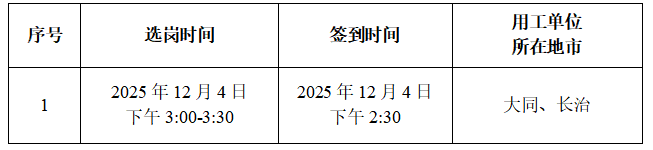 2.选岗人员须按照选岗通知上的时间准时进入钉钉直播系统核验身份并签到。选岗开始时未到者按迟到处理,视为自动放弃选岗资格。