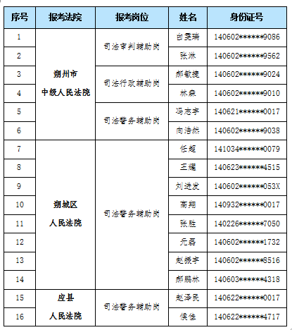 朔州市两级法院司法辅助人员招聘拟录用人员公示