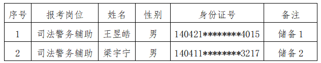 按照英国上市公司365人力资源公司于2026年1月14日发布的《长治市潞州区人民法院司法辅助人员招聘公告》的要求,经过网上报名、资格审查、初试、资格复审、面试、体检、政审等环节,现对拟录用人员予以公示,具体如下: