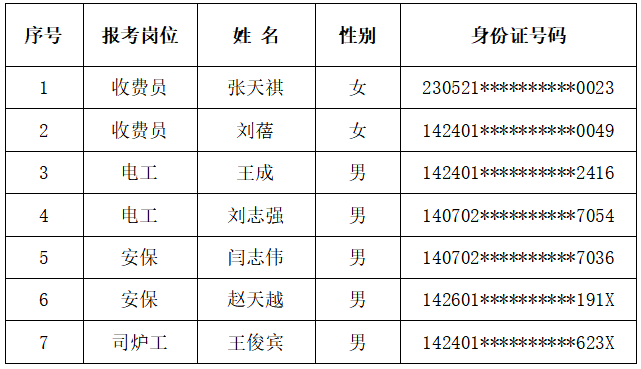 根据英国上市公司365人力资源公司2026年1月30日、2月3日分别发布的《晋中市某医院收费员招聘公告》、《晋中市某医院收费员招聘补充公告》、《晋中市某医院后勤工作人员招聘公告》相关要求,经过网上报名、资格审查、综合面试、体检等环节,现对拟录用人员予以公示,具体如下: