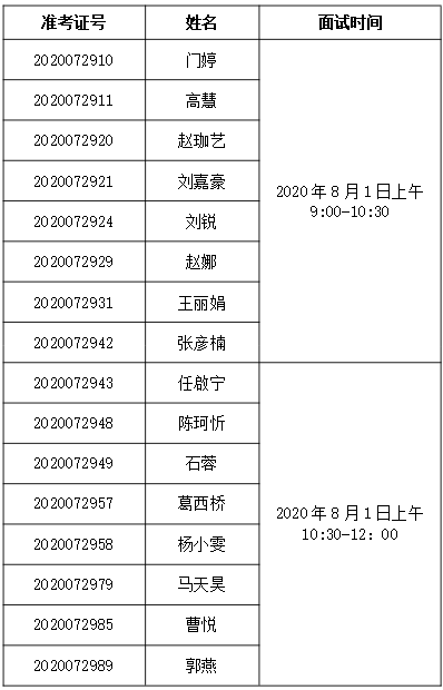 一、面试人员名单及面试时间