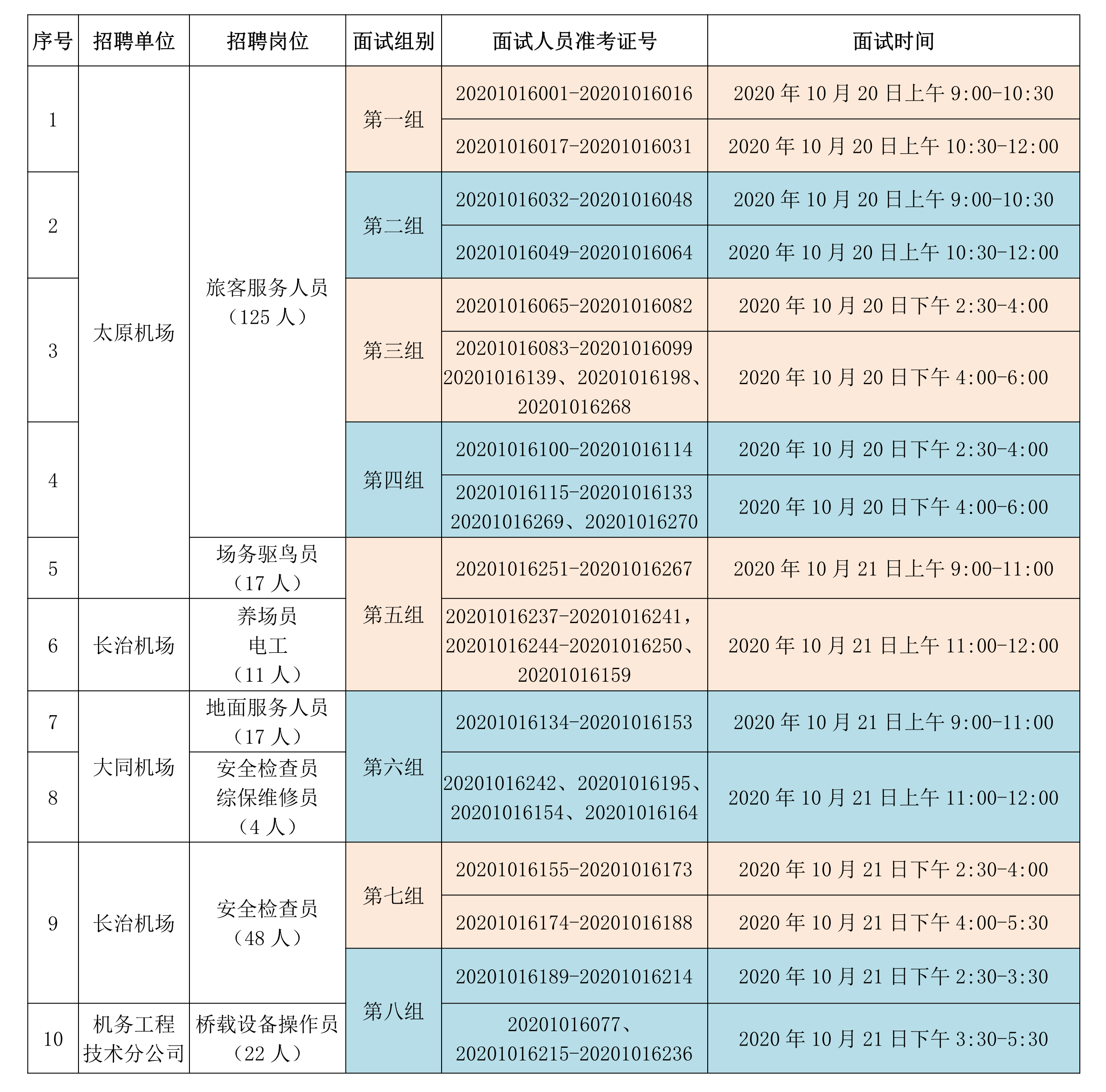 根据山西航空产业集团2020年公开招聘劳务派遣制工作人员的相关要求,现就各岗位(警务协勤人员、消防战斗员除外)的面试有关事宜通知如下: