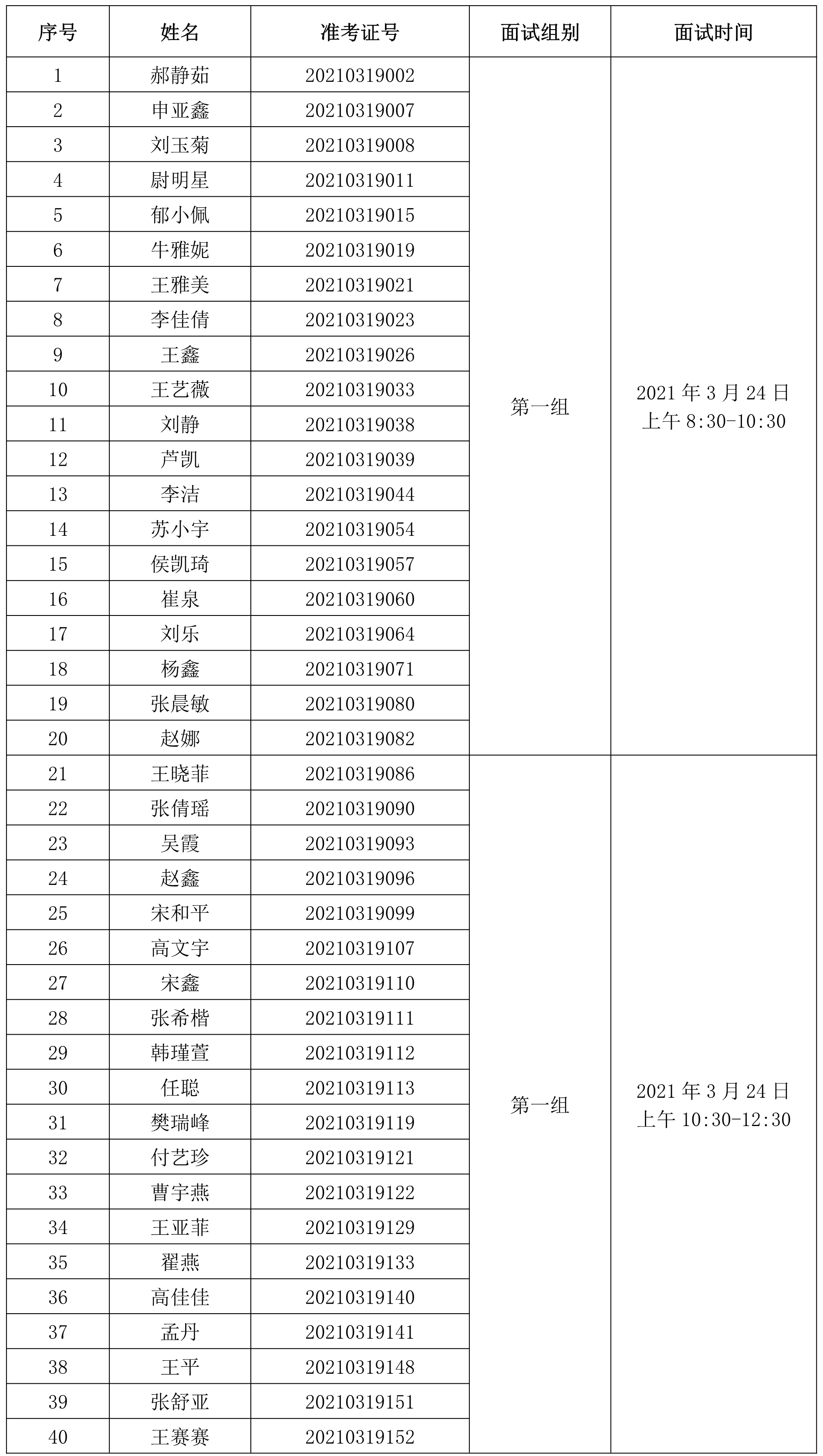 一、入围面试人员名单