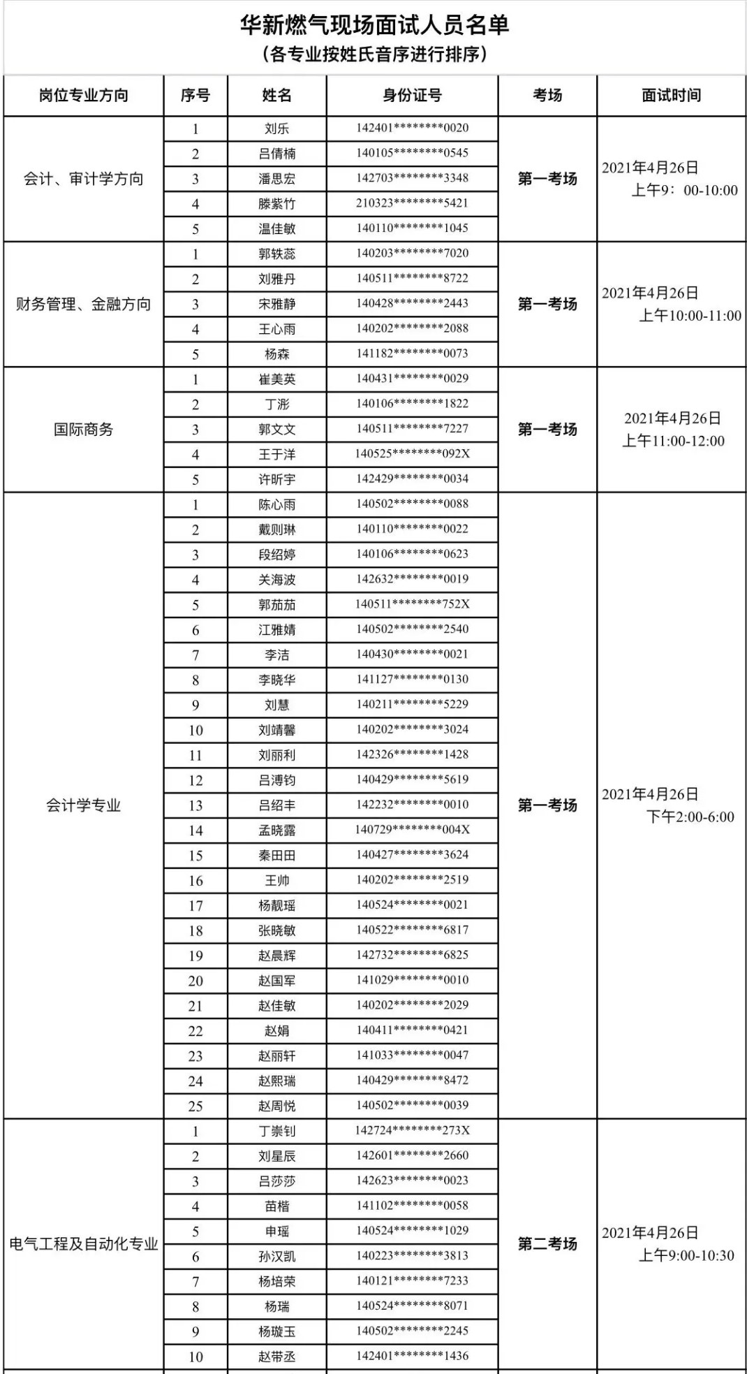 一、进入现场面试人员名单
