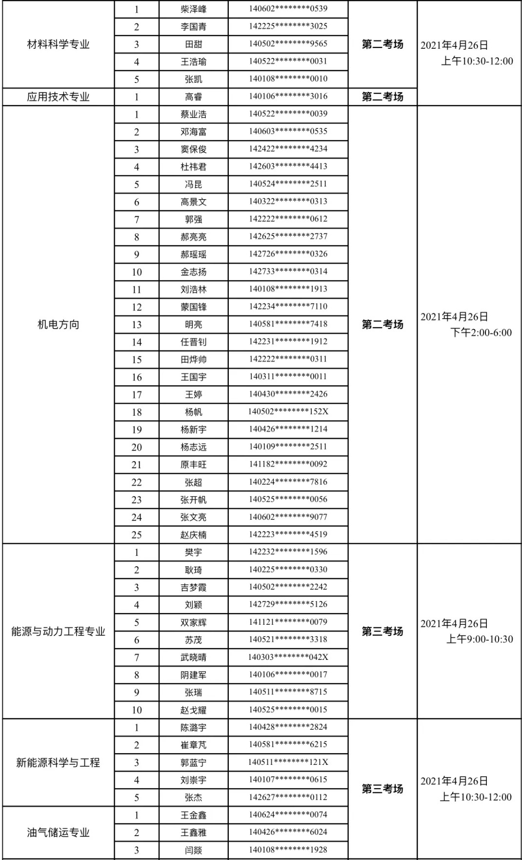详见附件1(各专业以姓氏音序进行排序)。