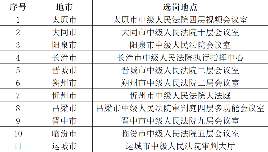 2.请选岗人员提前了解各地市法院的招录名额,结合本人实际,提前确定选岗意向。