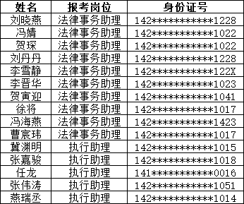根据《临汾市大宁县人民法院公开招聘劳务派遣制司法辅助人员公告》要求,经网上报名、资格审查、笔试、机试、面试等环节,根据各岗位报考人员的综合成绩由高到低进行排序,确定15名体检人员,现就体检有关事项通知如下: