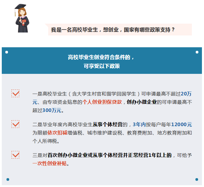 【一图看懂】高校毕业生想创业,国家有哪些政策支持?