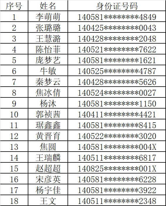 二、入围面试名单(排名不分先后顺序)