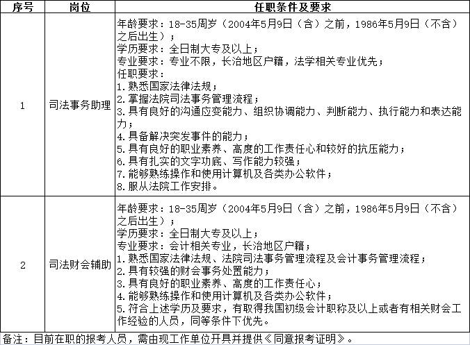 根据工作需要,长子县人民法院委托山西英国上市公司365人力资源派遣有限公司,面向社会公开招聘 5 名司法辅助人员(司法事务助理 4 名、司法财会辅助1名),现将有关事项公告如下。